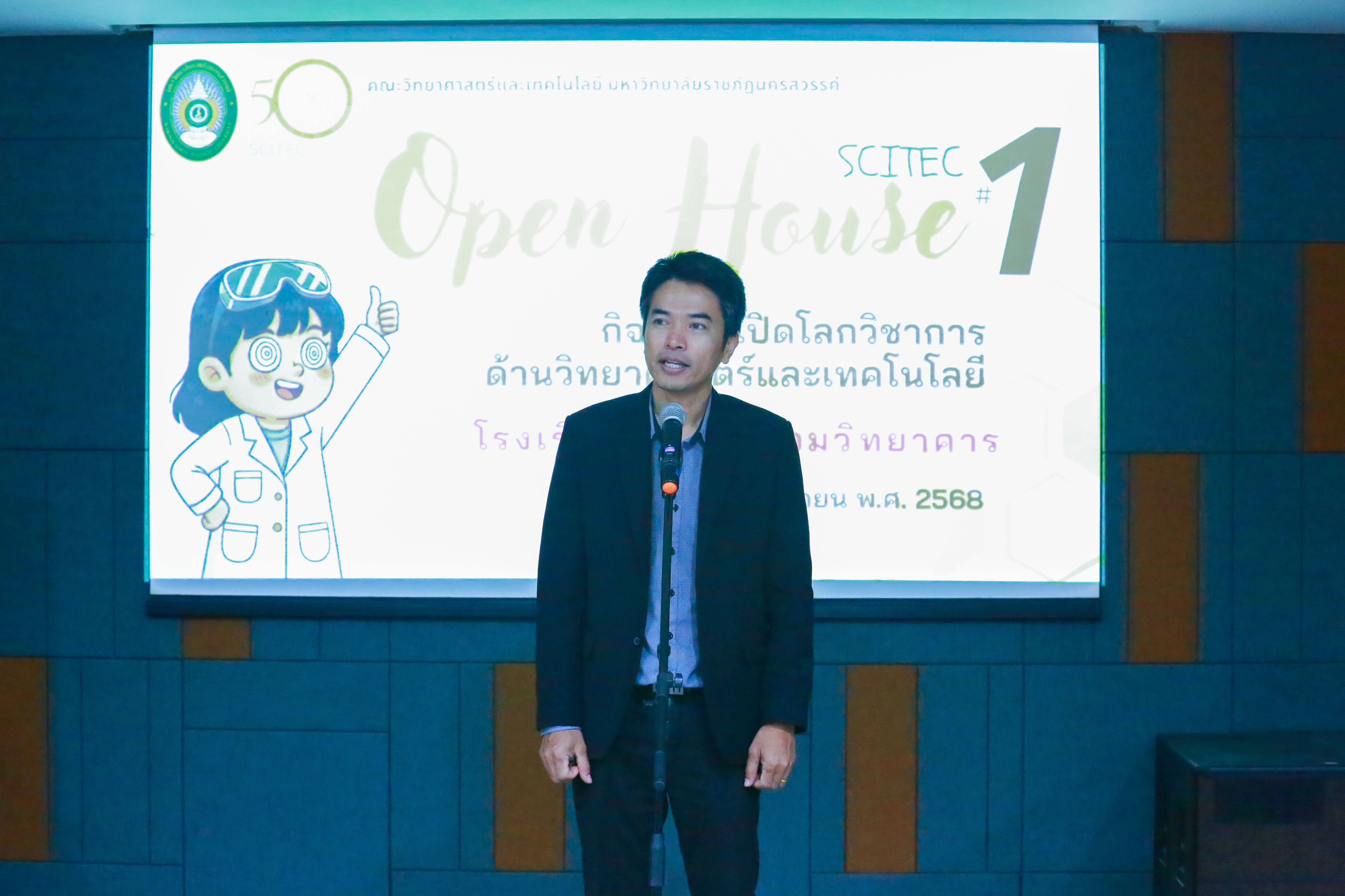 วันที่ ๑๙ พฤศจิกายน พ.ศ.๒๕๖๘ คณะวิทยาศาสตร์และเทคโนโลยี จัดโครงการพัฒนาศักยภาพทางคณิตศาสตร์ วิทยาศาสตร์ และเทคโนโลยี สำหรับนักเรียนระดับมัธยมศึกษา กิจกรรมเปิดโลกวิชาการด้านวิทยาศาสตร์และเทคโนโลยี สำหรับโรงเรียน ครั้งที่ ๑ โดยอาจารย์คณินณัฏฐ์ โชติพรสีมา คณบดีคณะวิทยาศาสตร์และเทคโนโลยี เป็นประธานกล่าวเปิดและยินดีต้อนรับ คุณครู นักเรียน โรงเรียนห้วยน้ำหอมวิทยาคาร ที่ได้เข้าร่วมการพัฒนาศักยภาพในครั้งนี้ ณ ห้องประชุมนนทรี ชั้น ๑ อาคารศูนย์วิทยาศาสตร์ คณะวิทยาศาสตร์และเทคโนโลยี